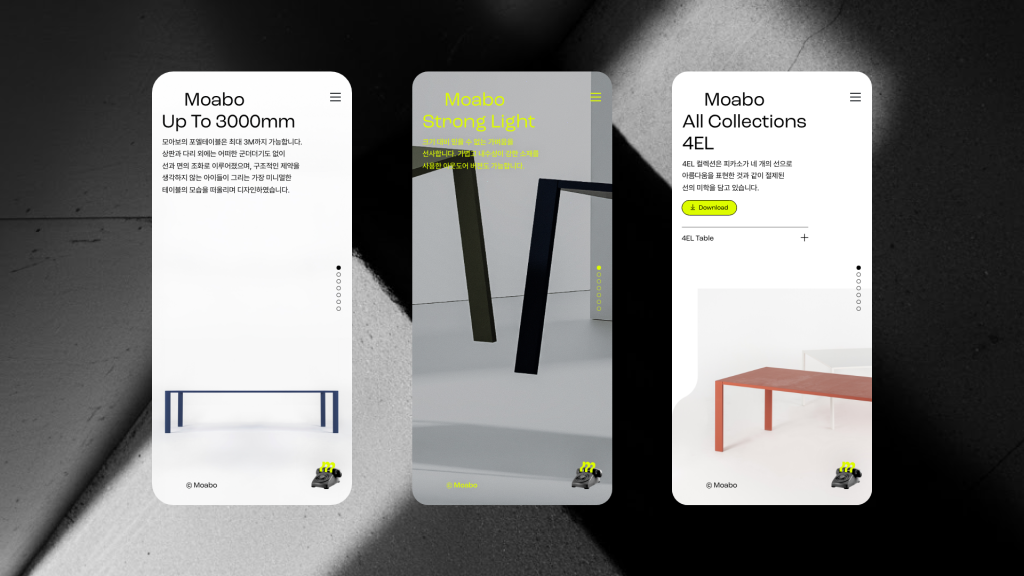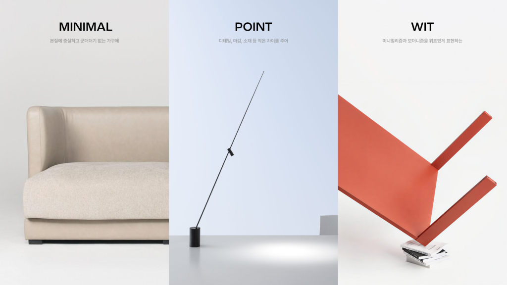 모아보는 ‘More is a Bore’에서 파생된 네이밍처럼, 미니멀리즘을 새로운 시각으로 풀어내는 하이엔드 가구 브랜드입니다. 현실적인 한계에 안주해 온 국내 가구 시장의 분위기에서 벗어나, 본질에 충실한 구조와 군더더기 없는 형태를 바탕으로 높은 심미성과 완성도를 갖춘 가구를 선보입니다. 디테일과 마감, 소재에서의 미묘한 차이를 통해 익숙하지만 쉽게 지나치기 어려운 감각을 만들어내며, 간과되기 쉬운 영역에서 예상 밖의 임팩트를 제안합니다.