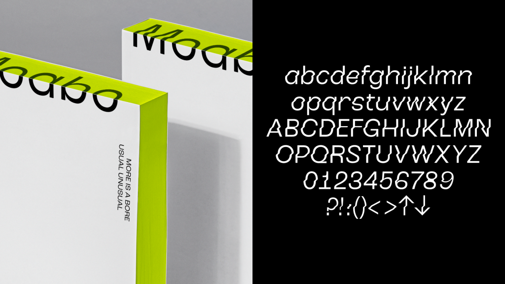 Manual Graphics translated this philosophy into a visual identity based on the concept, “Usual Unusual.” By extending parts of basic letterforms into new shapes, the graphic system expresses the potential and impact of small details. Combined with a striking neon yellow palette, the identity establishes a strong first impression for the new brand and enables Moabo to stand out quickly within an increasingly competitive market.